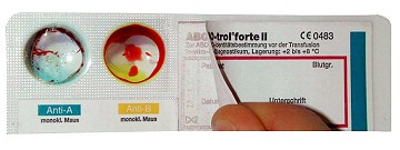 16000 | AB0-trol forte II Bedsidetest-Karte zur Überprüfung der Patientenerythrozyten und der Spendererytrozythen bezüglich der AB0-Kompatibilität (mit Flüssigserum Anti-A und Anti-B) | 25x4 Karten |